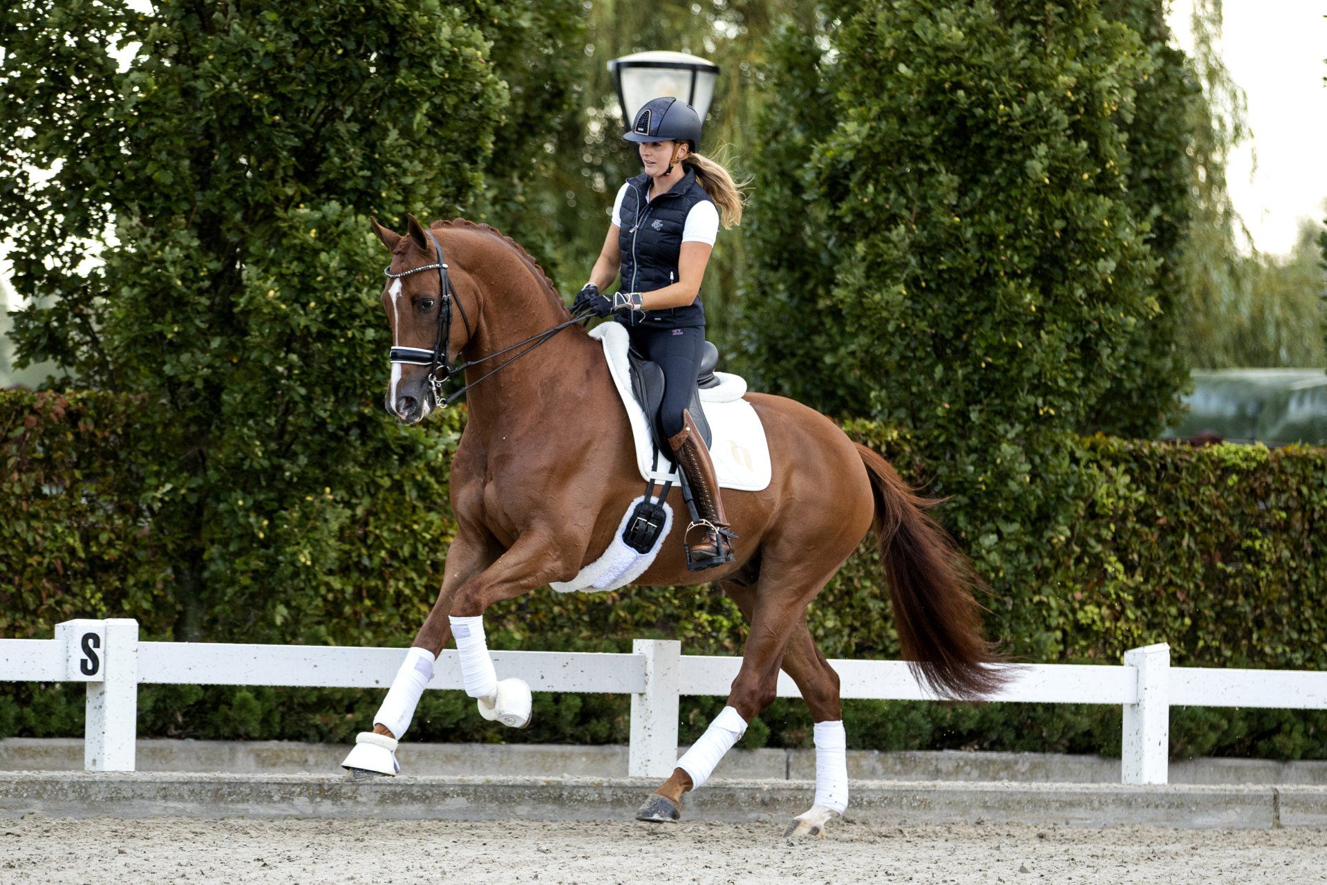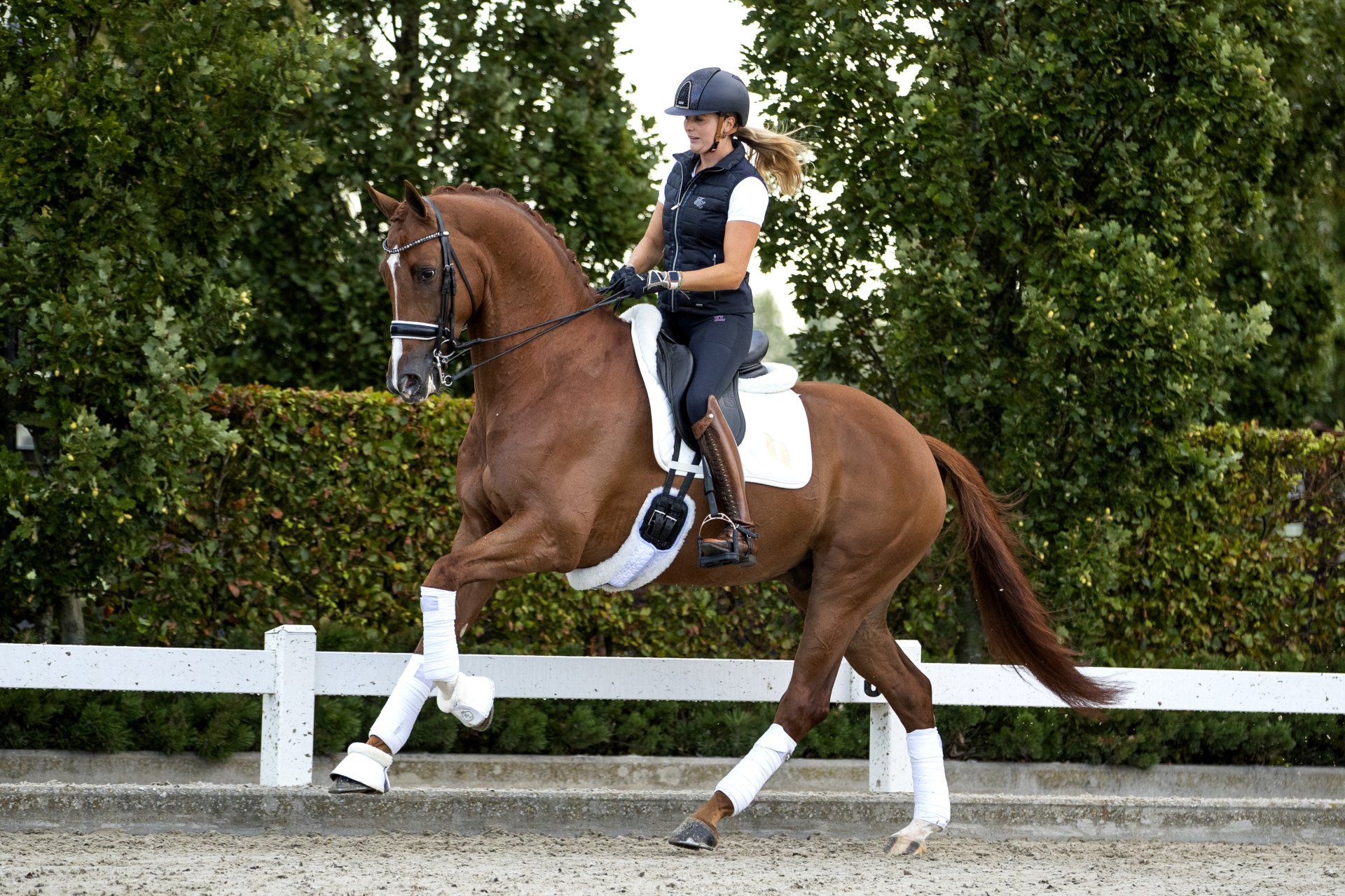 Afgelopen zaterdag schreef Emmelie met de Desperado N.O.P. (v. Vivaldi) de kadervormingswedstrijd in De Meern op haar naam. De combinatie verscheen voor het eerst weer in de ring na het NK Dressuur in 2020. Met een score van 77,03% waren zijn de concurrentie ruimschoots de baas.                                                                                                                                        “Ik was erg blij met de proef afgelopen zaterdag. Het was natuurlijk weer even geleden en we moeten weer een beetje ritme opbouwen. Maar Desperado had veel looplust af en toe zelfs nog iets teveel. We hebben weinig fouten gemaakt en hij blinkt uit in heel veel onderdelen. We kregen goede punten voor de appuyementen, piaffe, pirouettes en de zigzag” aldus Emmelie.                                                                                                                                                                                                                                                                 “De eerst volgende wedstrijd is al over twee weken, namelijk Indoor Brabant. Ik hoop dat ik hem dan nog iets meer gedragen krijg en de focus ligt op de afwerking van het geheel. Verder gaan we niet zoveel veranderen in de training, hij is super in vorm en fit.”